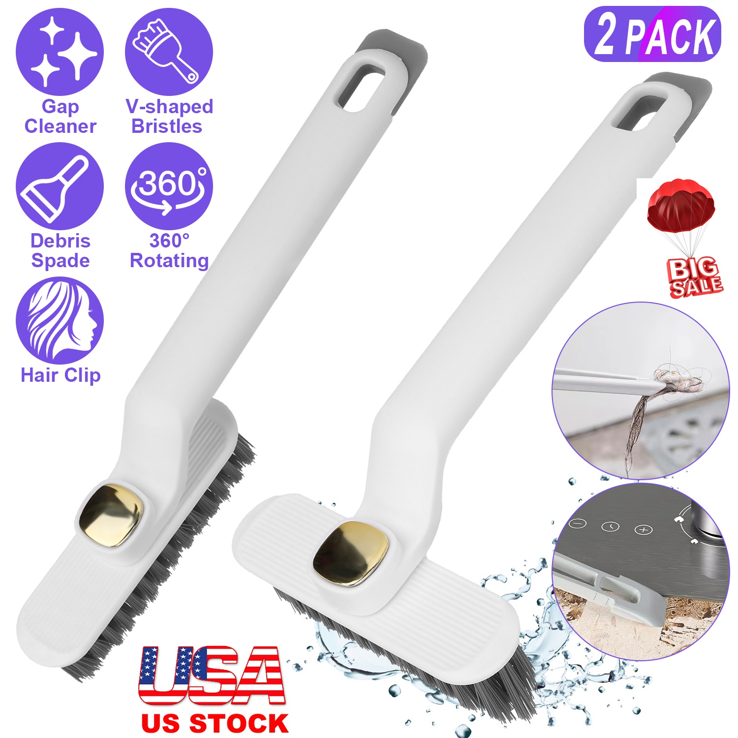 2 Pack Multi-Function Rotating Crevice Cleaning Brush Stiff Bristle Brush Gap Cleaner with 2-In-1 Clip and Spade for Tight Spaces Bathroom Kitchen