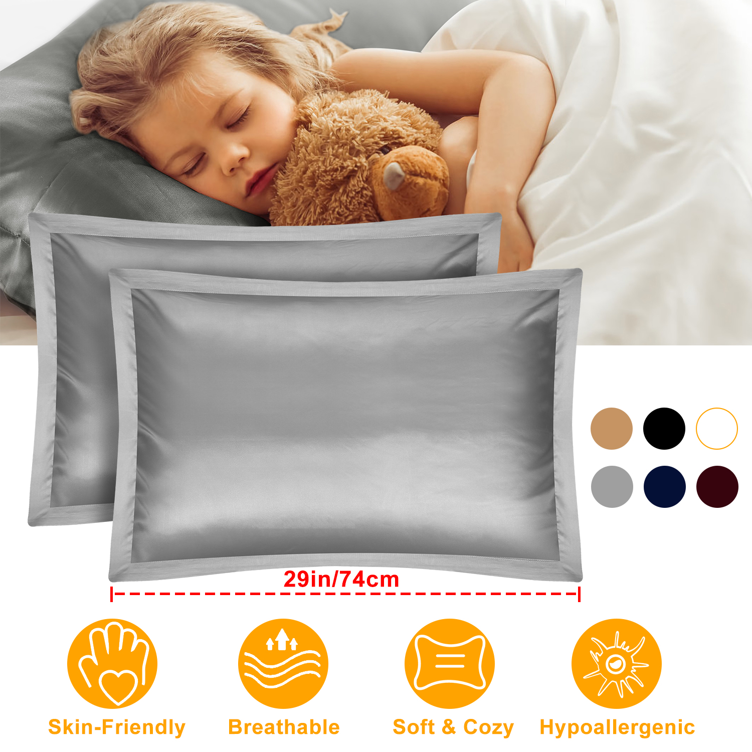 Our silky satin pillowcase comes with 2 packs and 6 colors for you option to match your bedding, including: Navy, Burgundy, Ivory, White, Silver and Black. Made with premium silk-like polyester fabrics that is for optimal softness to embrace a comfortable restful night’s sleep. Soft and smooth feeling, our pillowcase is helpful to reduce facial wrinkles compared to other coarse pillowcase; Also it can keep your hair safe from harm and knotted. Moreover, they’re skin-friendly and moisture to help feel cool in summer and warm in winter. Make you enjoy a sound sleep and have healthy skin and beautiful hair every morning.