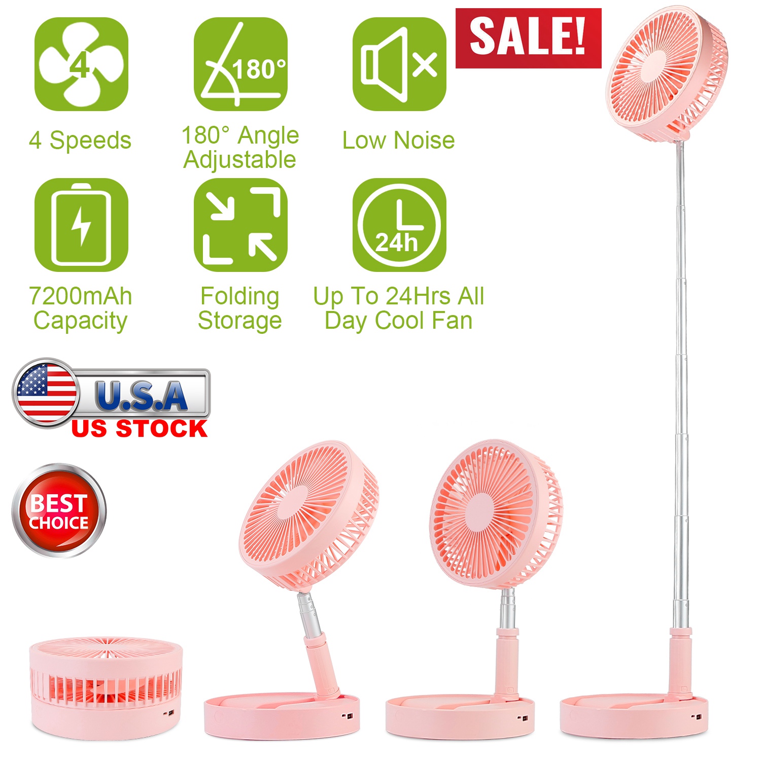 Portable Folding Desk Table Fan Quiet USB Rechargeable Telescopic Standing Floor Fan w/ 4 Speeds Adjustable Height 180° Tilting Angle For Office Home
