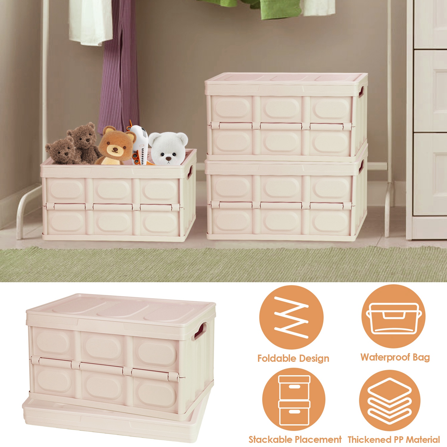Home > 2Pcs 56L Collapsible Storage Bins With Dustproof Lid Waterproof Interior Bag Handle Stackable Storage Box Container Utility Organizer Crate For Campin