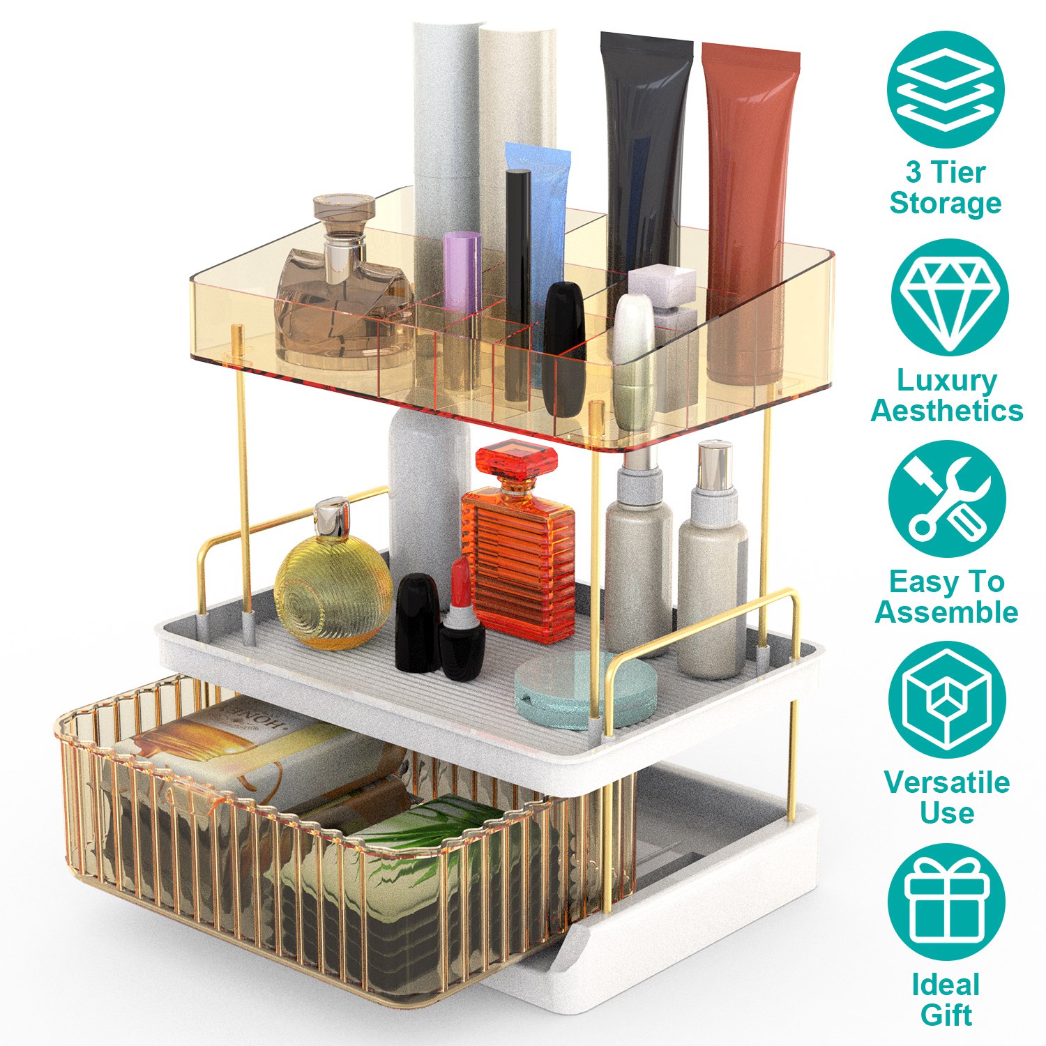 Home > 3 Tier Makeup Organizer for Vanity Large Capacity Skincare Shelf Bathroom Countertop Organizer with Drawer for Lipsticks Lotion Toner Perfumer Masks