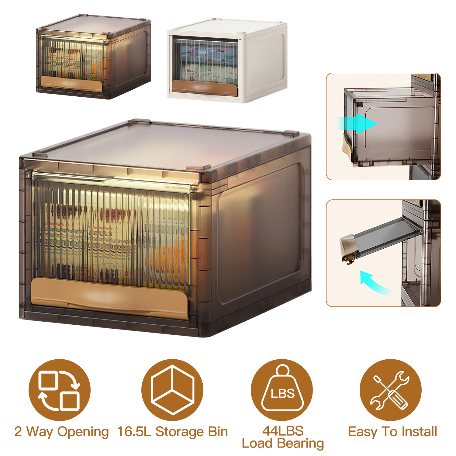 Home > 16.5L Stackable Storage Bin Plastic Drawer with Lid Closet Organizer Two Ways Opening Storage Box for Closet Kitchen Living Room Bedroom